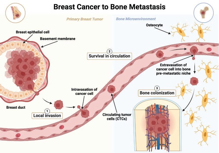 Fig. 2. Breast cancer metastisis to the bone microenvironment. Created with biorender.com