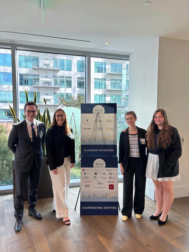 To the right: Georgia Law students Andrei Niveaux (LL.M. ‘26), Jayln Ross (J.D. ‘27), Caroline Walls (J.D. ‘27), and Alexandria Tetstone (J.D. ‘27) attended the Atlanta International Arbitration Society’s annual conference in Atlanta, Georgia.