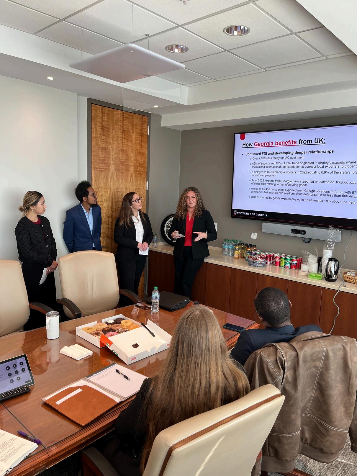 In fall 2025, Professor Desirée LeClercq designed and led an independent study focused on international trade. Fifteen students, including JD, LL M, and Graduate Certificate in International Law students, spent the semester examining potential trade and investment opportunities between the State of Georgia and the United Kingdom from an interdisciplinary perspective They researched and wrote a paper examining key export and import sectors in Georgia and the United Kingdom, and then drafted a legal instrument between the two At the end of the semester, they traveled to Atlanta to present their draft instrument to the Georgia Department of Economic Development, Eversheds Sutherland, and to the British Consulate General in Atlanta. Special thanks to alumni Sara Gershon (J.D. ‘17), General Counsel at the Georgia Department of Economic Development, and Sam Hatcher (J.D. ‘20), Executive Counsel to the Office of Governor Brian P. Kemp, for meeting with students and providing feedback on the academic exercise