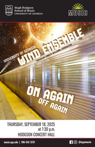 And those were only the ticketed events. We offered over 40 additional largeto-mid-size ensemble performances between Hodgson and Ramsey Concert Halls. Our UGA Wind Ensemble concert in February, as part of the College Band Directors National Association National Conference, was standing room only. In October, the UGA residency of the Athens Hip Hop Harmonic played to a nearly sold-out theatre as well.