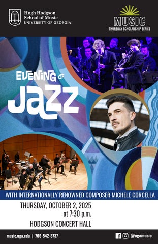 Our free performances offer us a chance to make music accessible to everyone. These concerts feature a diversity of ensembles, varied repertoire, and performers from the school of music and across the UGA campus. To help us maintain accessibility to our concerts, you can learn more about concert underwriting and other ways to support the Hugh Hodgson School of Music on page 27.