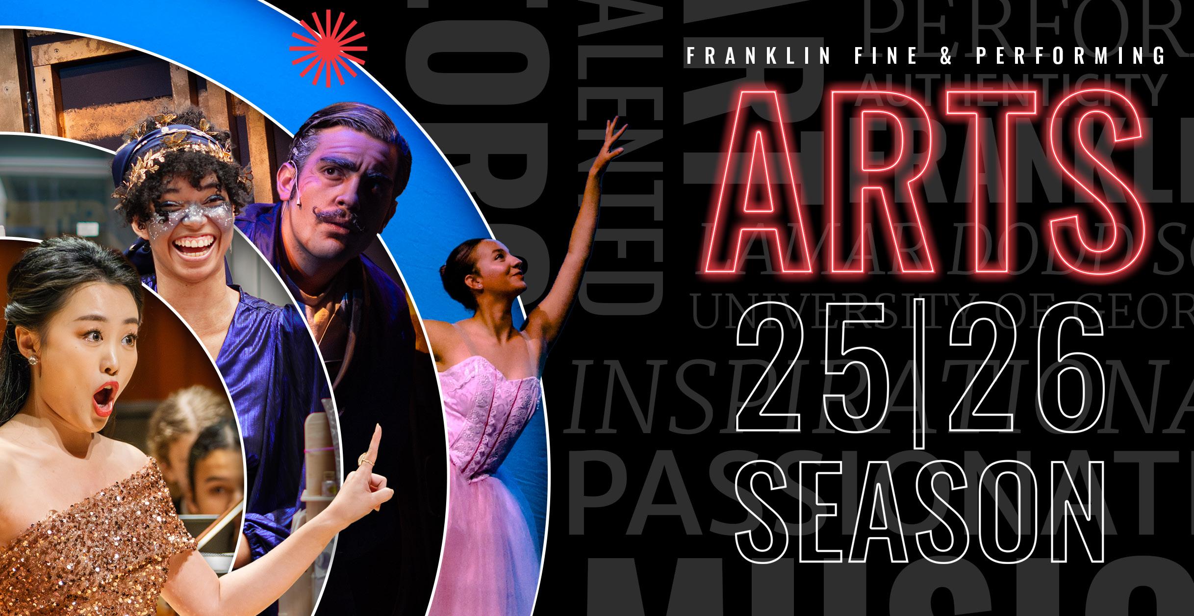 The Franklin Fine & Performing Arts Season Brochure is available now online at franklin.uga.edu/fine-andperforming-arts.