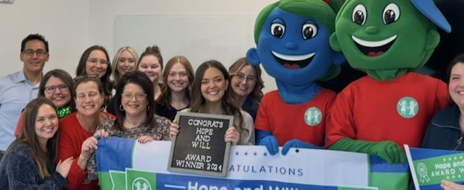 The Arthur M. Blank Hospital recognizes individuals and teams for exceptional contributions with the Hope and Will Award. Pryce Lofton (BM ’24) LPMT, MT-BC, Music Therapist, Hematology and Oncology, at Arthur M. Blank Hospital recently received this award. In their words: