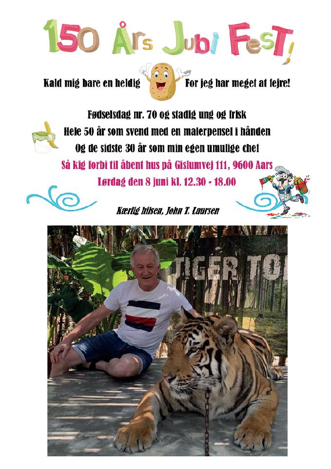 John T. Laursen, Gislumvej 111, Aars, lørdag, 8. juni.