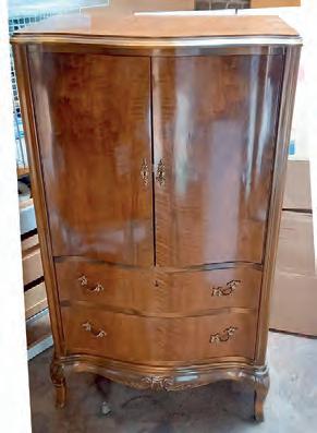 Skab med buede låger, skuffer og hylder, lys mahogni, arvestykke fra ca. 1932, 2 nøgler, 1.200 kr. Tlf: 98 62 11 72