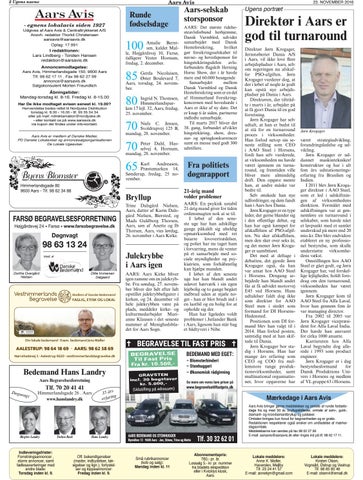 I redaktionen: Lars Lindberg - Torsten Hansen redaktion@aarsavis.dk Annoncemodtagelse: