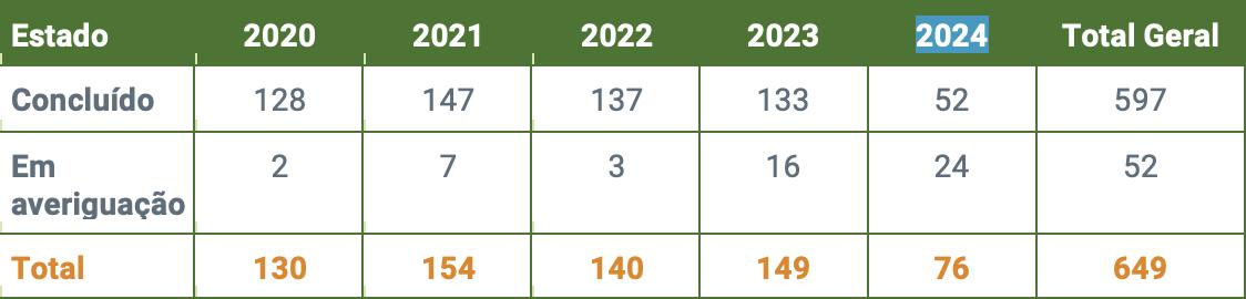 Os dados apresentados referem-se a acidentes de trabalho objeto de inquérito no âmbito da ação inspetiva levada a cabo pela ACT