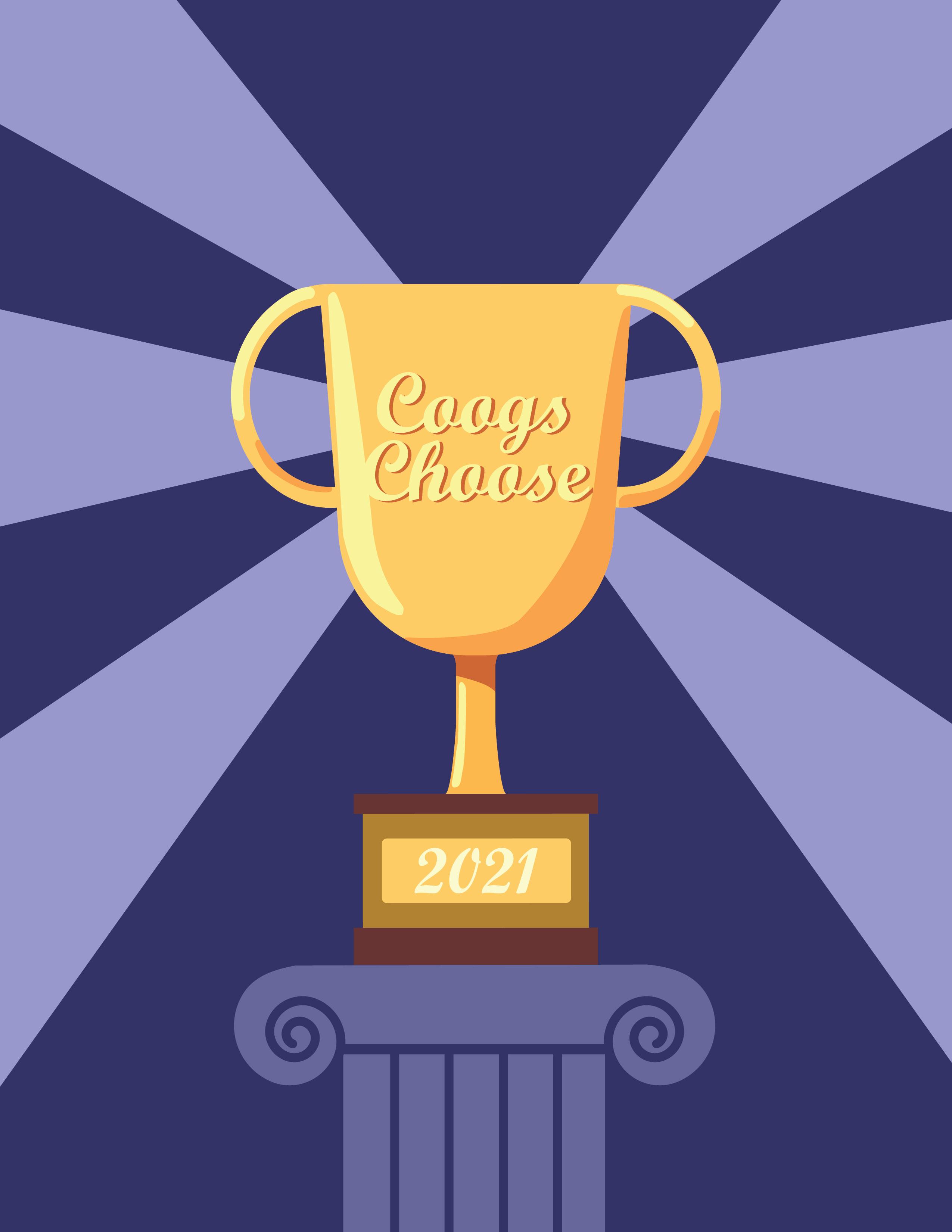 Welcome to our last issue of the 2020-2021 school year: our annual Coogs Choose. During March, we released a poll that had a variety of multiple choice and write-in questions about the UH community’s thoughts on all the best things about Houston and UH — from the areas of lifestyle, student life, entertainment, and food and drink. You all shared your voice, and this issue is a collection of the winners in each category and a few fun pieces to give some insight into some of the winners.