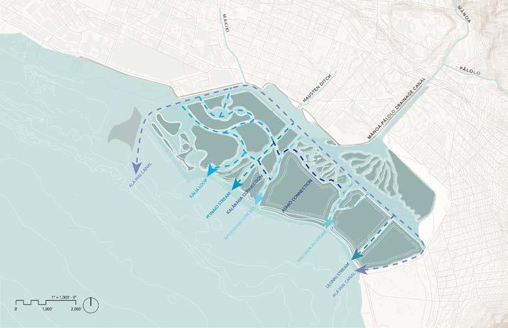 Following initial research, precedent studies, urban-design-scale analysis, mapping, and planning phases, this speculative urban design studio will investigate the near- and long-term [re]introduction of nature-based blue-green infrastructure for climate and sea level rise adaptation in Waikīkī (commonly translated as “spouting fresh waters”).