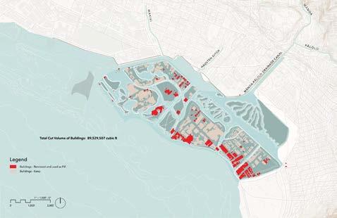 Existing buildings with potential remain while others retreat (turning rubble into reusable fill). The remaining buildings are retrofitted for resiliency and sustainability with recommended design strategies and floodable or floodproof ground floors.