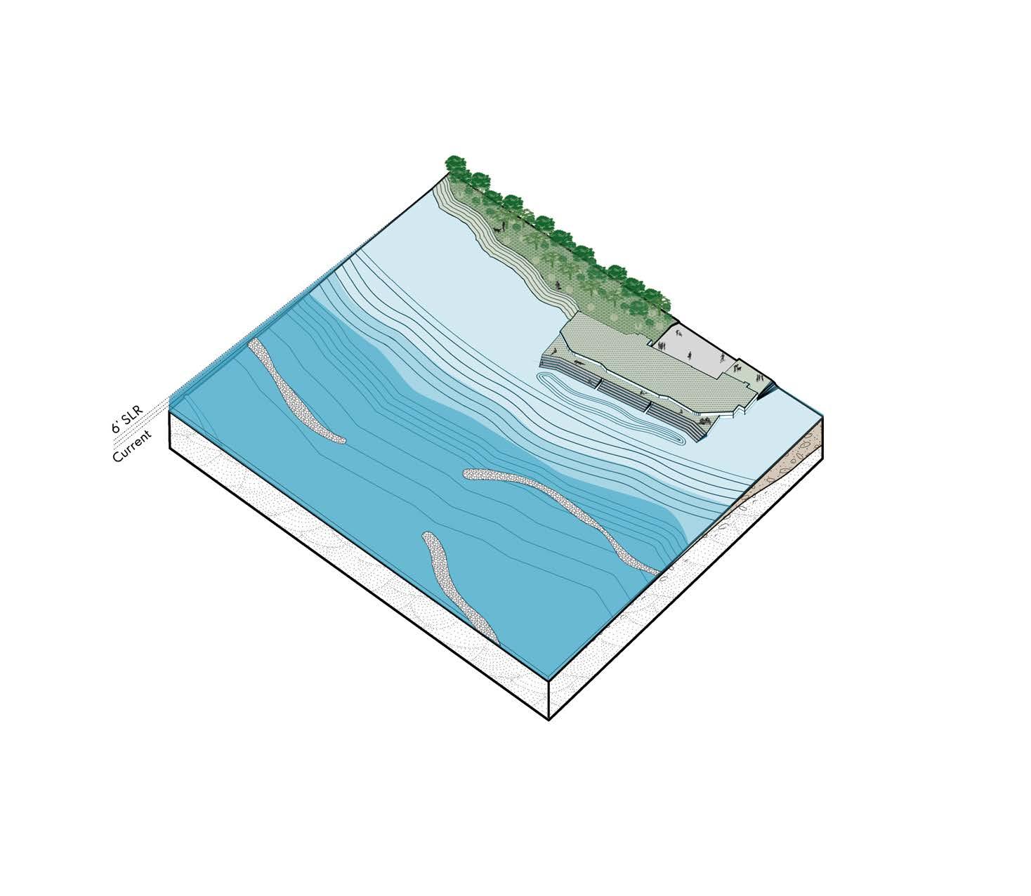 AS SEA LEVEL RISES, PLANTED AREAS WILL BE PARTIALLY TO FULLY SUBMERGED. PLANTS WILL ASSIST WITH EROSION CONTROL AND WATER FILTRATION AS THIS OCCURS.