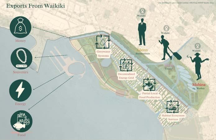 While Waikīkī could likely never be a self-sustaining and closed-loop neighborhood, the proposed design envisions a future that emphasizes beneficial exports.