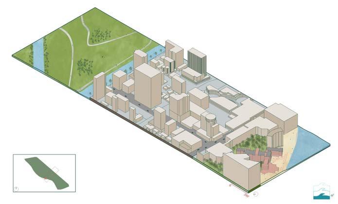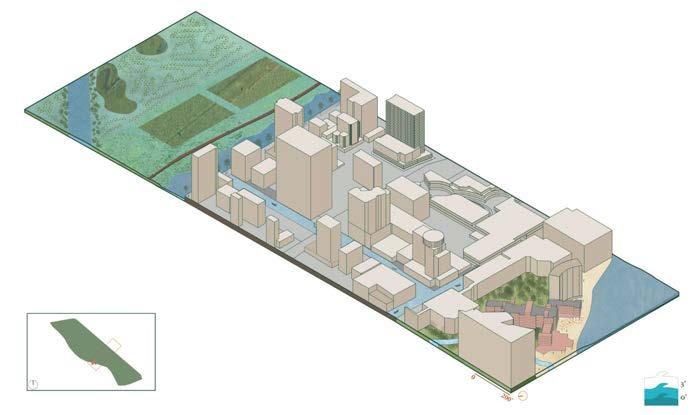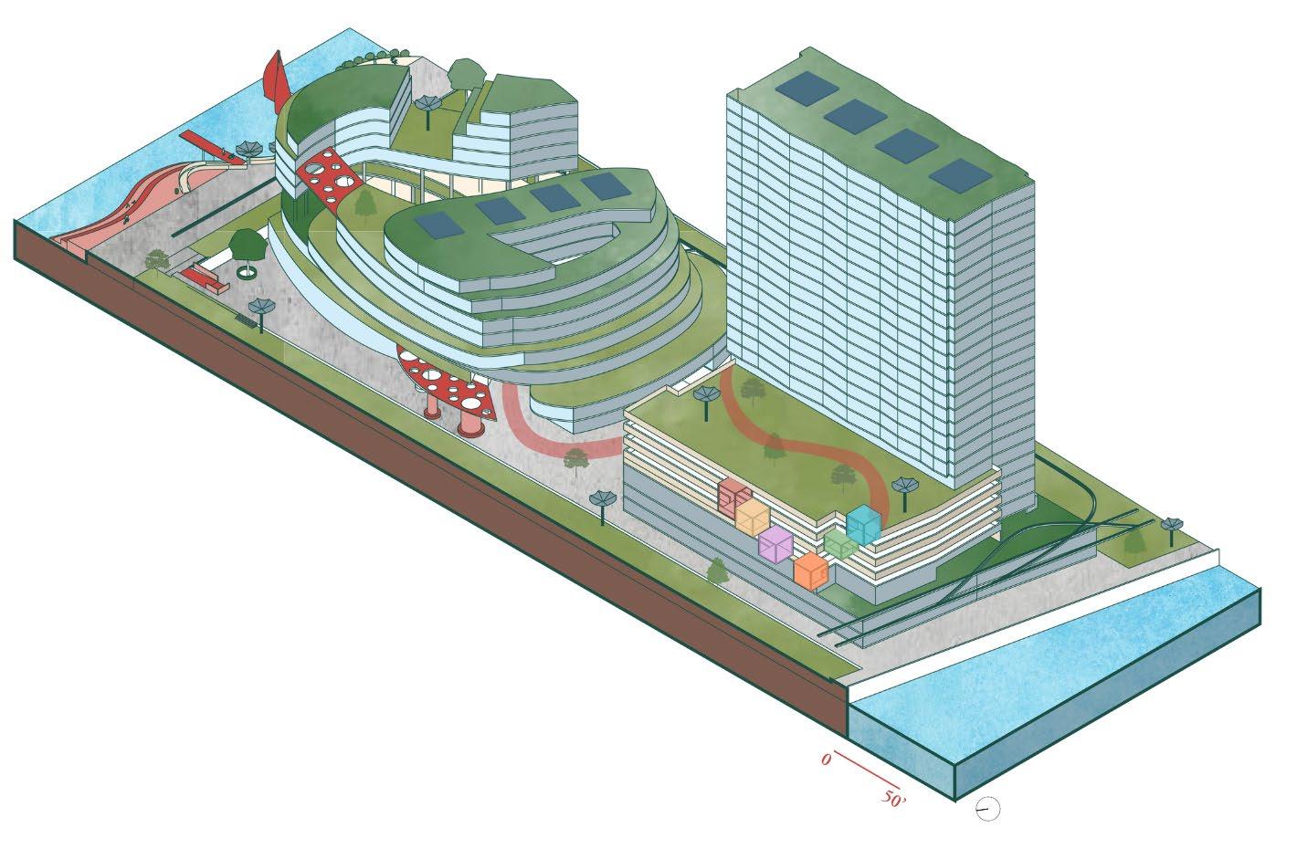 Long-term isometric rendering of master plan (6’ sea level rise)