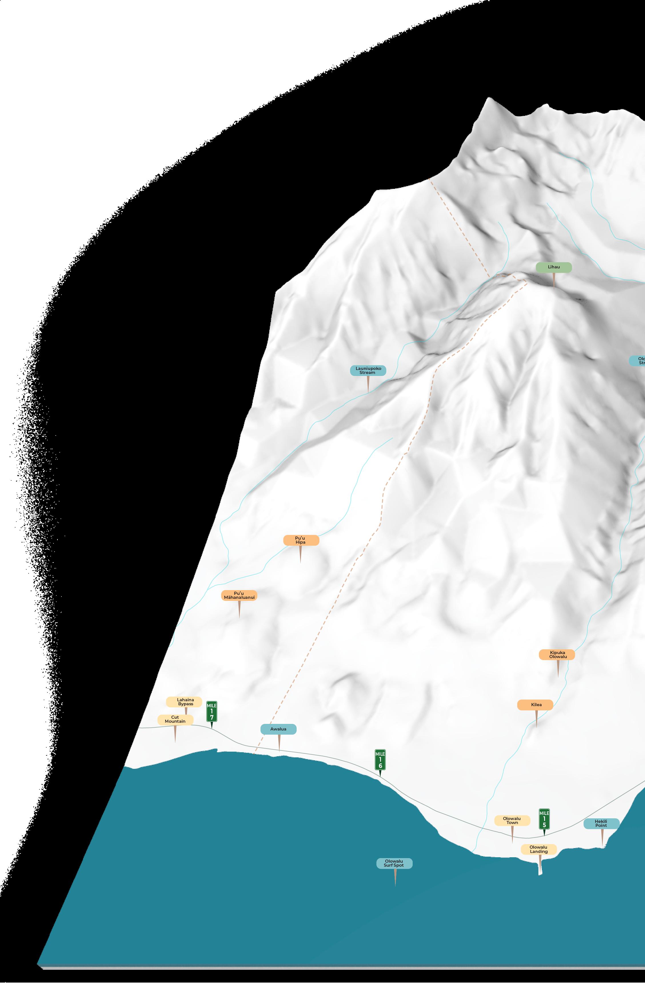 The planned Honoapiʻilani Highway realignment provides opportunities to re-imagine the Olowalu-Ukumehame coastal corridor by incorporating park spaces, traditional biocultural practices, and nature-based solutions.