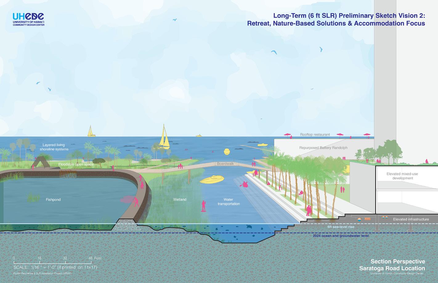 Long-Term (6 ft SLR) Preliminary Sketch Vision 2: Retreat, Nature-Based Solutions & Accommodation Focus