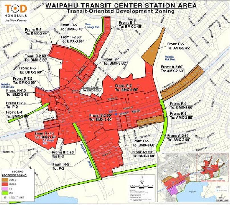 TOD presents an opportunity to address the current housing crisis on Oahu. Based on the current market, Waipahu is a neighborhood that is generally affordable for people who want to live near Honolulu but cannot afford to live in the central city. Based on common patterns of redevelopment, access to the rail and newly developed areas will raise the land value, resulting in a decrease in the affordability of housing. The specific housing needs of the Waipahu community based on community testimonial, individual household data, and Waipahu-level data, all fall with in the larger county and state context. Our recommendations are derived from identifying specific community needs and finding potentially feasible solutions given the variety of approaches and precedents. The purpose of these recommendations are to 1) focus housing policy on long-term, low-income, family-oriented rentals to avoid displacement of residents in Waipahu and future Honolulu TOD, 2) get to know the nuances of the community preferences and cultural norms in order to determine specific best practices going forward, and 3) set precedent for future TOD to improve the affordable housing supply for the C&C of Honolulu. We stress the importance of community knowledge and goals in deciding best housing practices for Waipahu and for future rail stations.