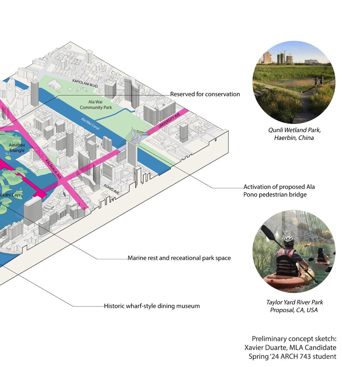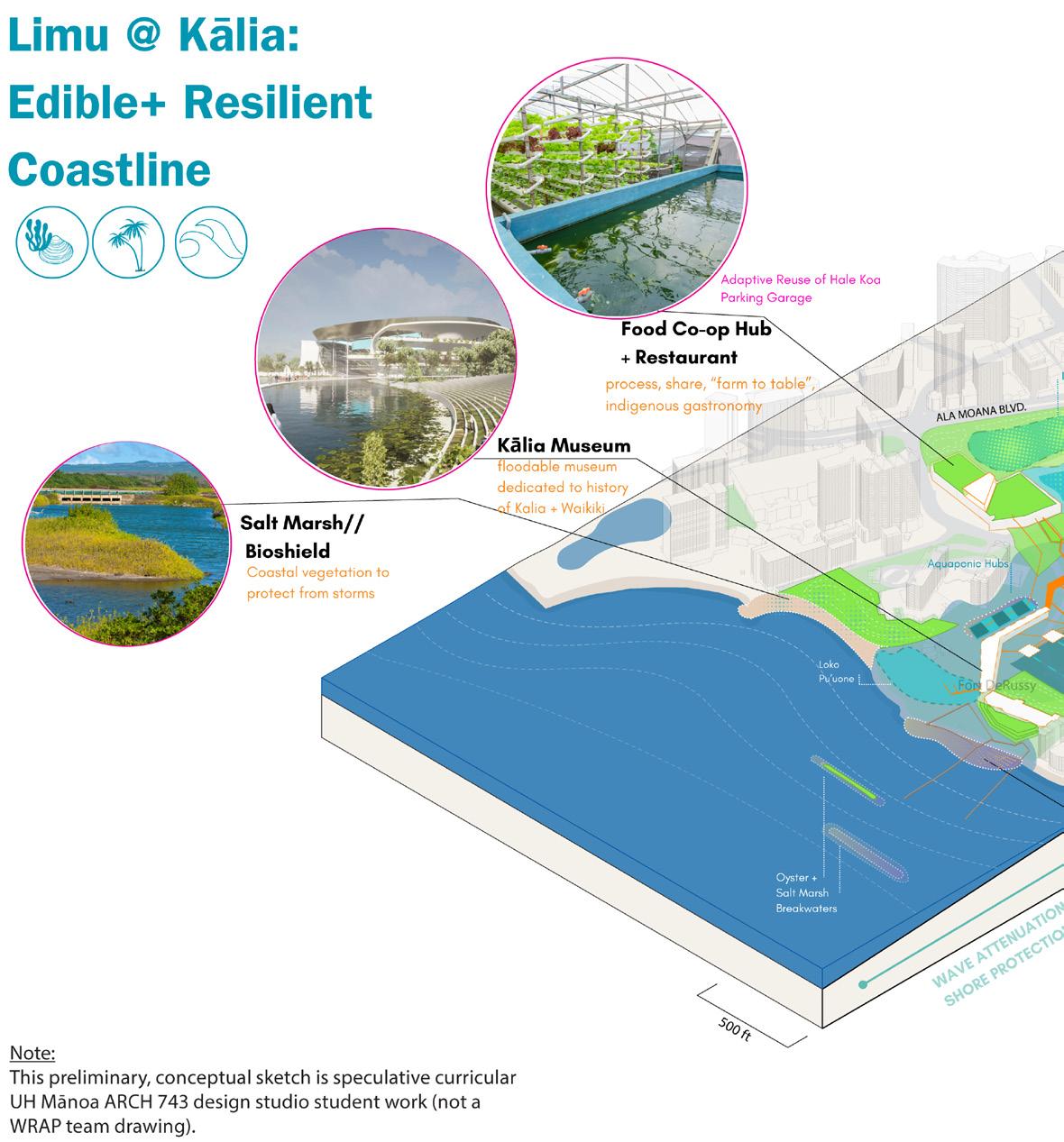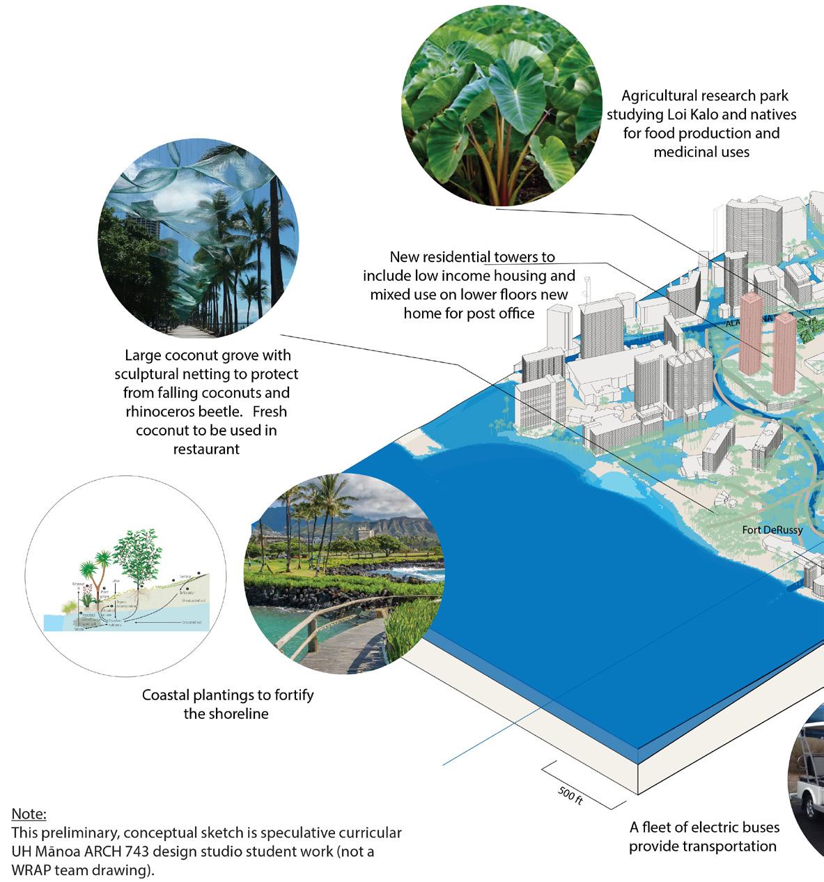 This preliminary, conceptual sketch is speculative curricular UH Mānoa ARCH 743 design studio student work (not a WRAP team drawing).