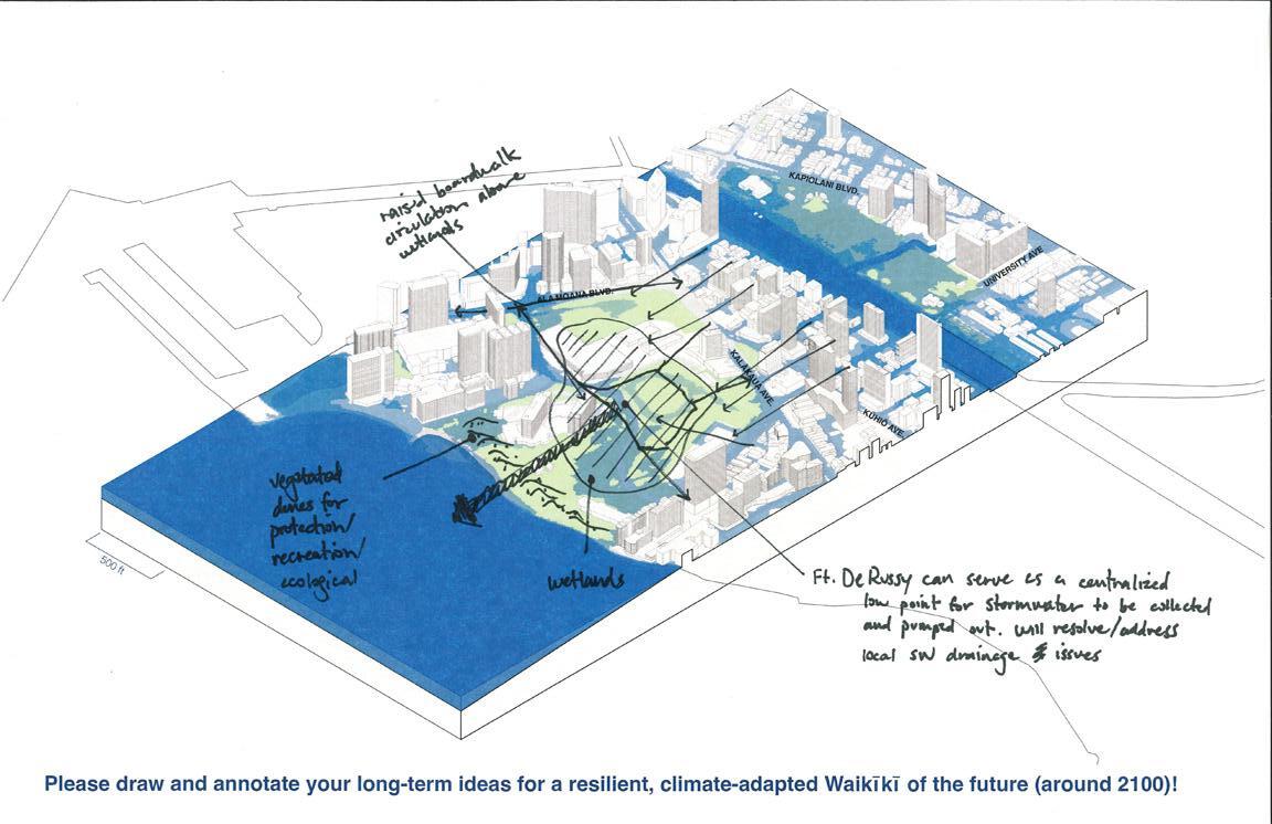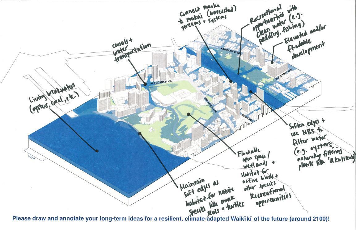 Current climate science suggests 4 to 6 feet of sea-level rise by the year 2100. What would you like to see included in a resilient Waikīkī of the future? Please share your ideas below.