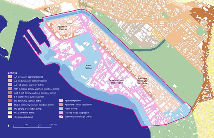 Isometric cross section through Waikīkī Special Design District in the area surrounding Fort DeRussy