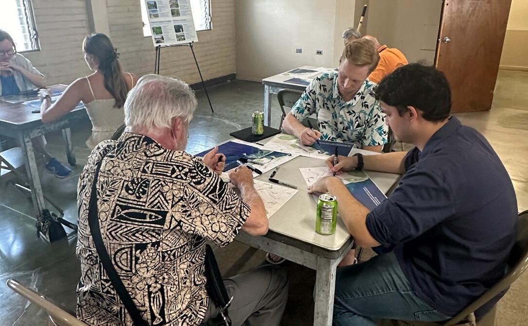 The project team coordinated, conducted, and facilitated two in-person co-design charrettes on Friday, February 23, 2024 (2:00 pm - 3:30 pm) at Ala Wai Community Park (Boathouse) and on Monday, March 4, 2024 (1:00 - 2:30 pm) at the Ala Wai Golf Course Clubhouse.
