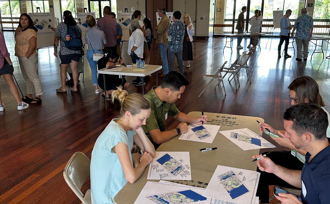 On Friday, February 23, 2024, UHCDC hosted the first of two community and stakeholder visioning events. This co-design charrette focused on the Special District in its wider watershed and neighborhood context. The interactive exercises posed questions related to ecology, hydrology, historical/cultural factors, as well as built environment/infrastructure vulnerabilities and nature-based solutions. The event was held at the Ala Wai Community Park Boathouse on the mauka side of the Ala Wai Canal.