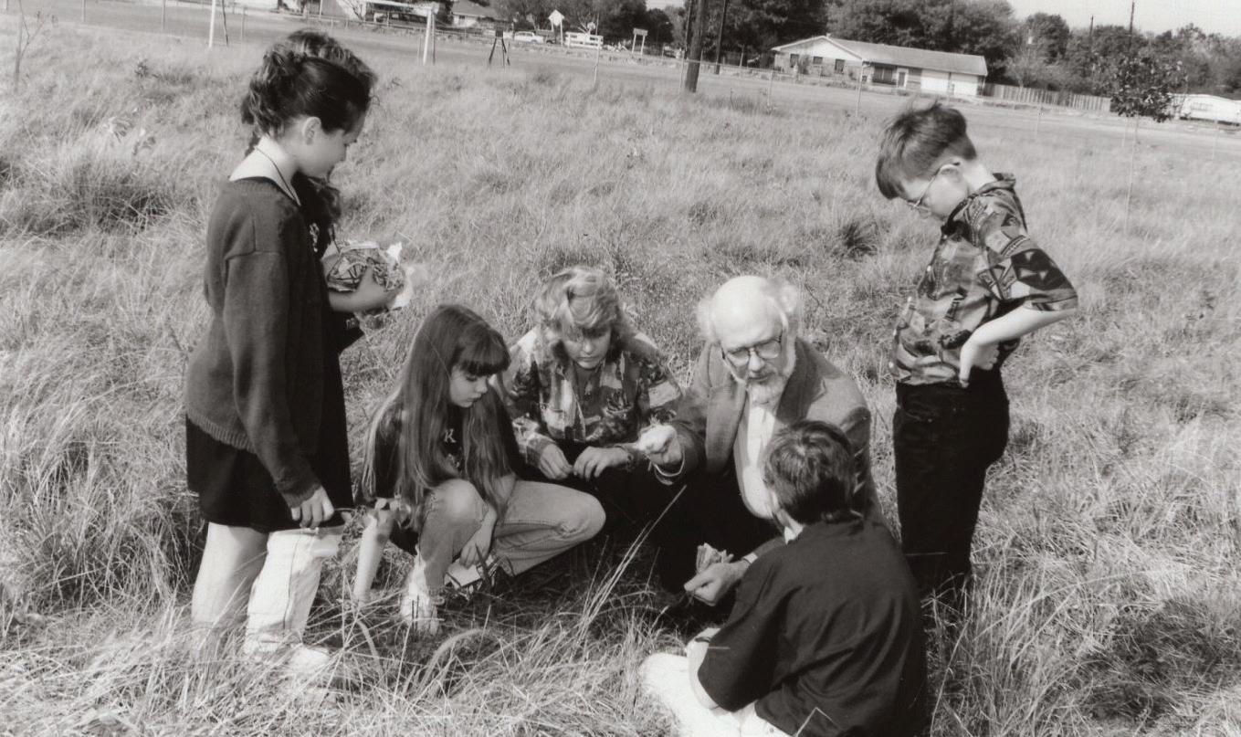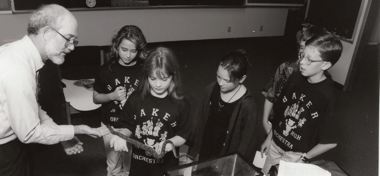 from Baker Junior High School outside being taught about the natural world at a fractal conservation program