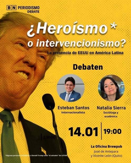 Nuestro decano, Esteban Santos, participócomoinvitadoenundebate organizado por BN Periodismo, en el queseanalizaronlosdesafíospolíticos deAméricaLatinayelimpactodelas políticas de Estados Unidos en la región, junto a la académica Natalia Sierra. Laparticipacióndenuestrodecanoen este espacio de debate reafirma el compromisodelaUHEconelanálisis académico,elpensamientocríticoyla presenciaactivadesusautoridades.