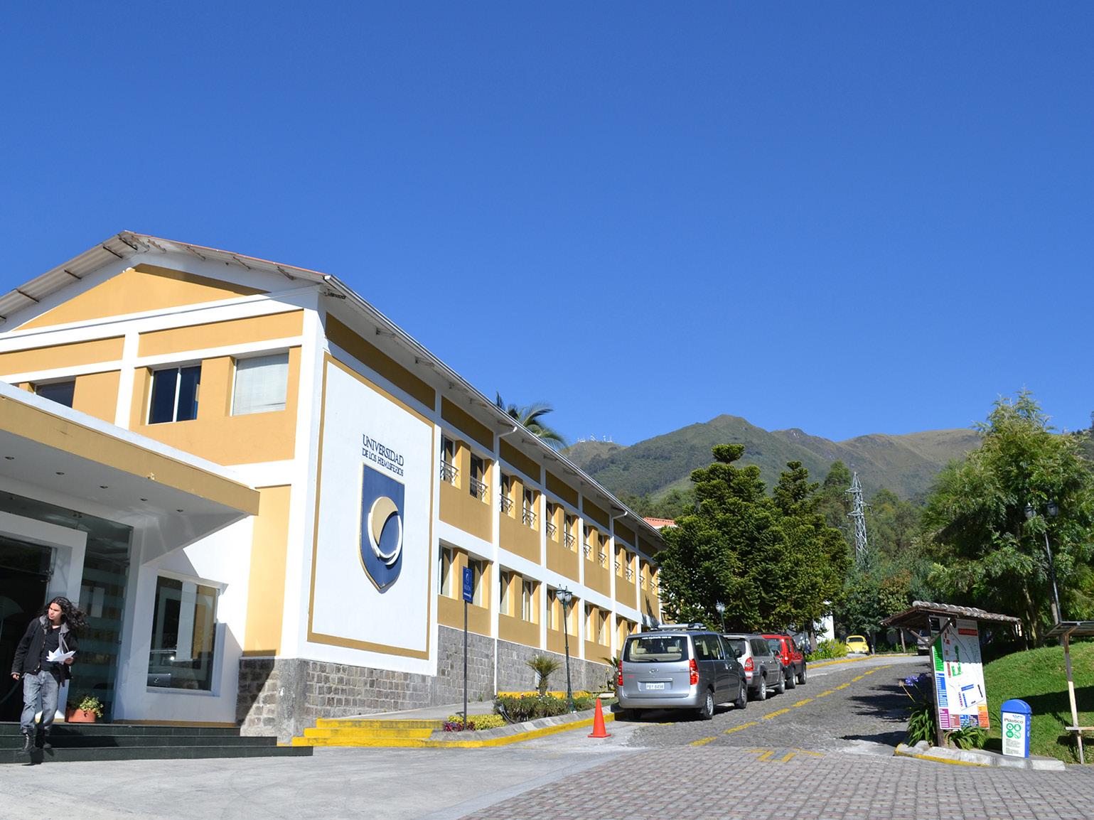 Concerté una reunión con Alejandro Ribadeneira, y un día de diciembre nos reunimos en la Universidad. Las aulas y las oficinas estaban vacías porque todos se habían tomado sus vacaciones, pero me deslumbró la majestuosidad de los espacios verdes, el horizonte despejado con varios volcanes visibles y el clima cálido, maravilloso. Ni siquiera me percaté de las construcciones prefabricadas que parecían más de un preescolar que de una institución de educación superior. Meses después en una entrevista para una emisora de radio me preguntaron la dirección de la Universidad y como no la sabía todavía respondí lo siguiente: “entre el Pichincha y el cielo”.