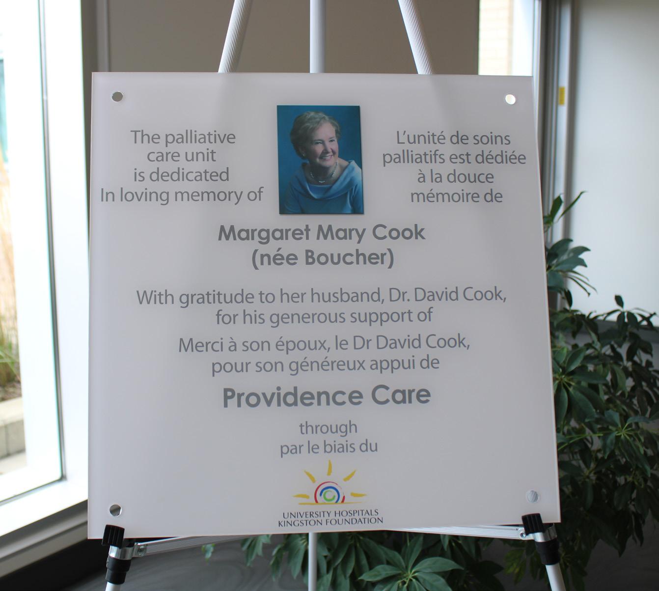 Providence Care. “The Margaret Cook Endowment Fund will directly help the day-to-day lives of people receiving end-of-life care for years to come. Our frontline staff will also greatly benefit from the continued education opportunities. Thank you to Margaret and Dr. Cook for believing in Providence Care. It’s because of people like them that we are achieving such a high standard in the care we deliver.”