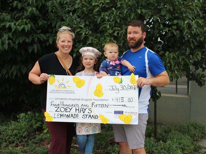 In 2021, Zoey required emergency surgery and was grateful for the care she received in the pediatric department at Kingston Health Sciences Centre. She was inspired and decided she wanted to give back to the hospital. In July of 2022, Zoey donated all her earnings to UHKF. Even at five years old, Zoey has managed to make a great impact on her community while inspiring more charitable efforts in others.