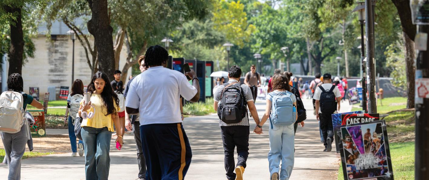 THE UNIVERSITY OF HOUSTON is rapidly emerging as a firstchoice university for incoming college freshmen across the country. Along with unprecedented interest, UH has seen a surge in visibility, engagement and enrollment metrics that points to its growing reputation, thanks to its nationally recognized programs, world-class research and court-dominating basketball team.