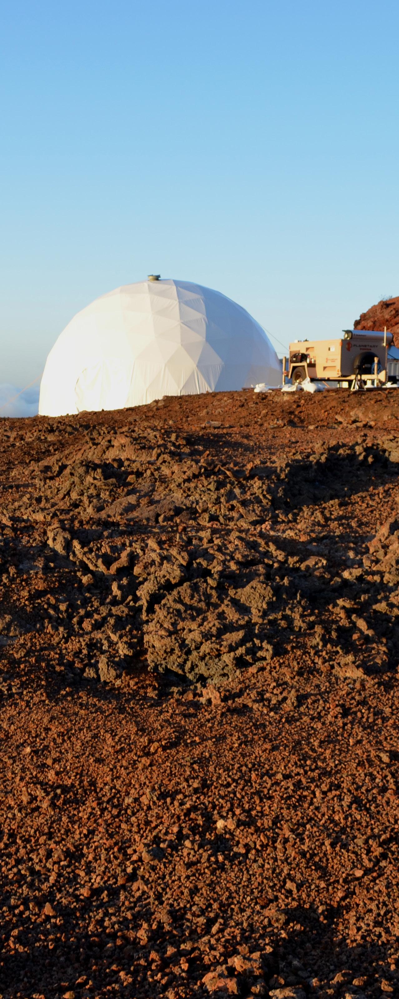 THE HAWAI'I SPACE EXPLORATION ANALOG AND SIMIULATION (HI-SEAS) MARS-LIKE ENVIRONMENT LOCATED 8,000 FEET ELEVATION ON MAUNA LOA, HAWAI'I ISLAND. NASA-SPONSORED HI-SEAS INCLUDED A SIX-MAN CREW LIVING IN AN ISOLATED MARS-LIKE SITE FOR 365 DAYS. LED BY UNIVERSITY OF HAWAI'I AT MĀNOA RESEARCHERS, IT IS THE LONGEST EARTH-BASED MARS SIMULATION CONDUCTED ON U.S. SOIL.