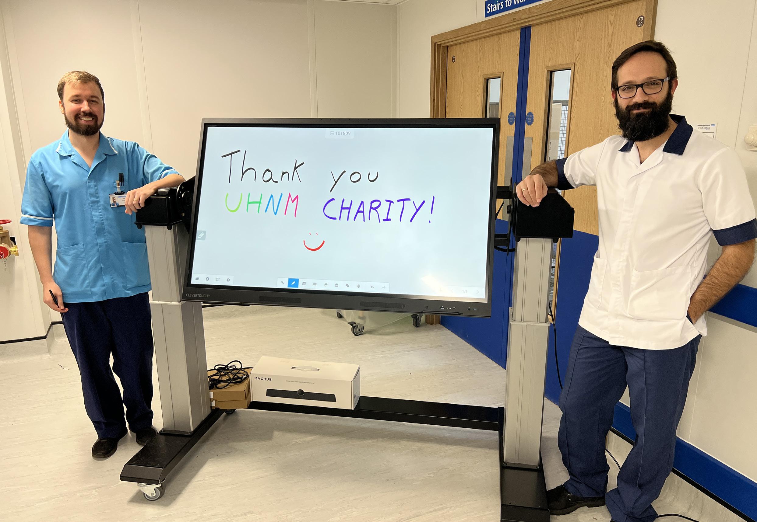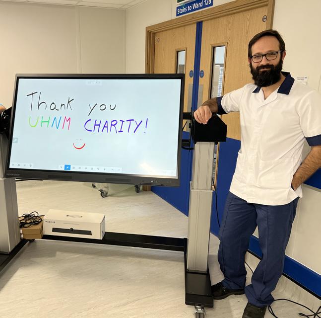 Steve Rushton, Head of UHNM Charity, said: “Thanks to our amazing supporters, UHNM Charity was delighted to support UHNM’s Acute Stroke Unit with this new equipment. Prior to its arrival staff on the Unit were using tablets with patients with much less effect due to their limited stroke-specialist content. The new screen will become an essential tool on the Unit not only improving clinical outcomes for patients but improving their experience whilst in hospital too.”