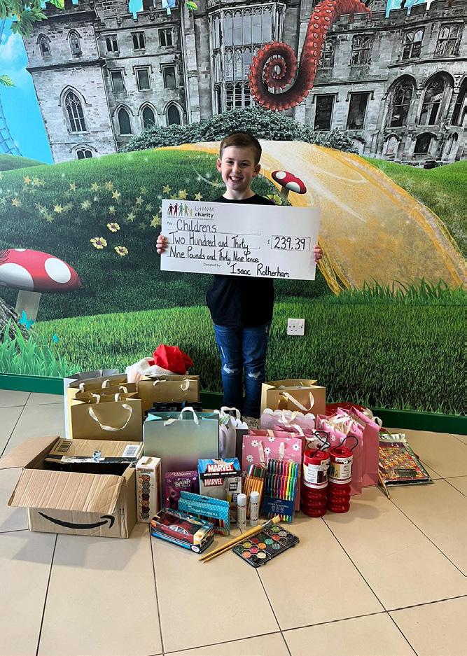 Superstar fundraiser Isaac Rotherham visited Staffordshire Children’s Hospital at Royal Stoke to present his cheque of £239.39 raised through the sale of hanging baskets and a nonschool uniform day.