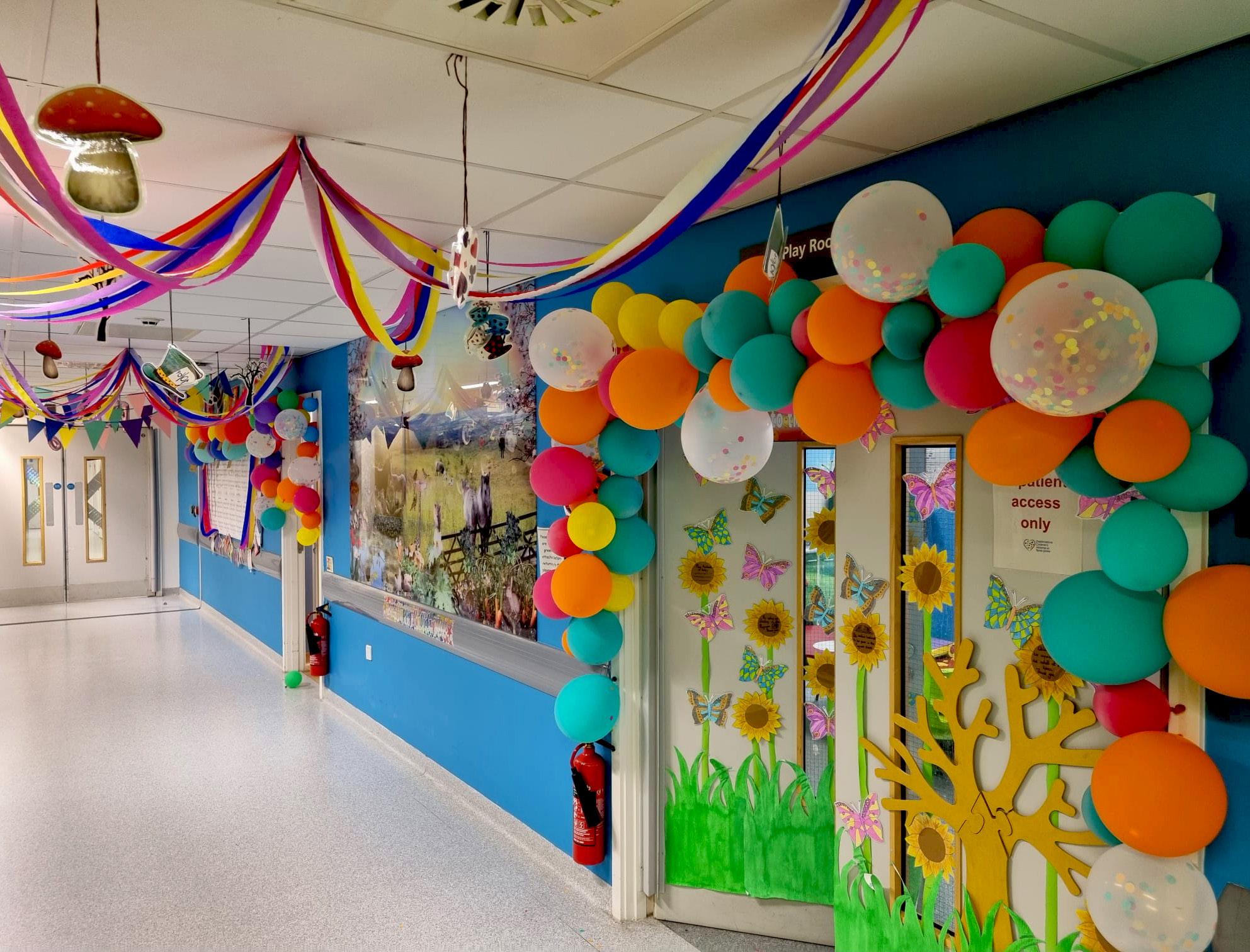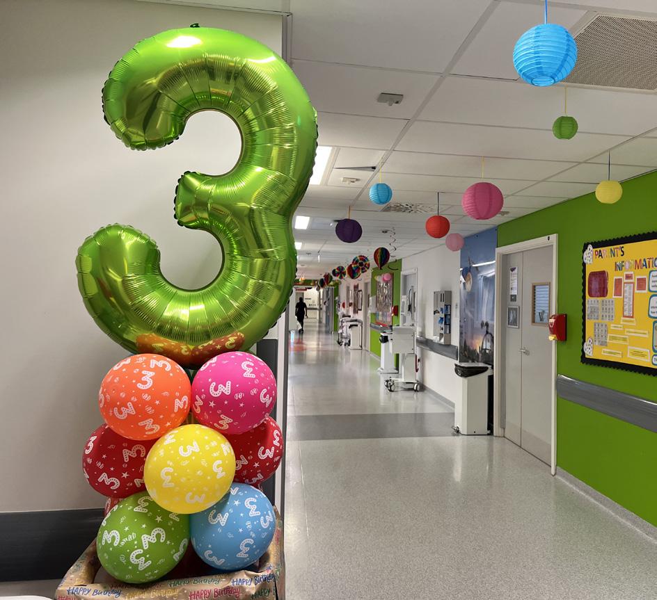 Clinical teams decorated the ward areas and the entrance to the hospital with colourful balloons and bunting in celebration of the third birthday.