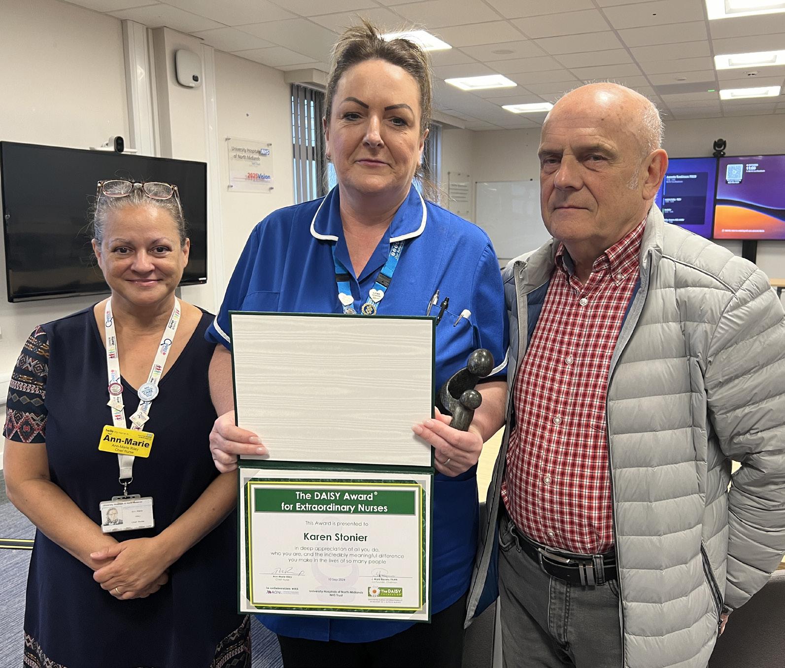 Karen and Roy were reunited at the Royal Stoke University Hospital when Karen was presented with a Daisy Award, given out to extraordinary nurses for their exemplary, compassionate care provided to patients and families.