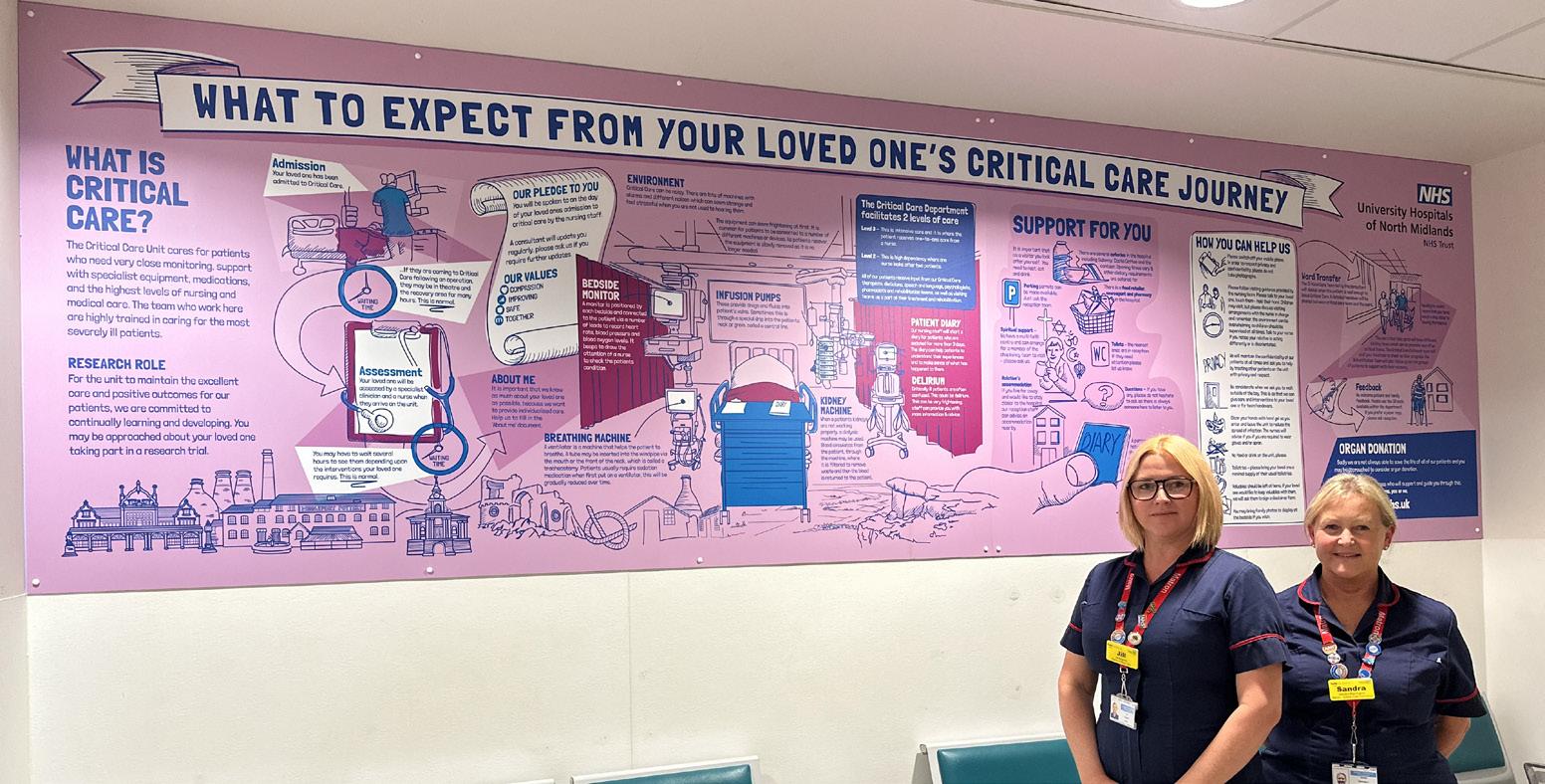 The mural is displayed in the Critical Care Unit reception area at Royal Stoke University Hospital and features a patient journey from admission to discharge.