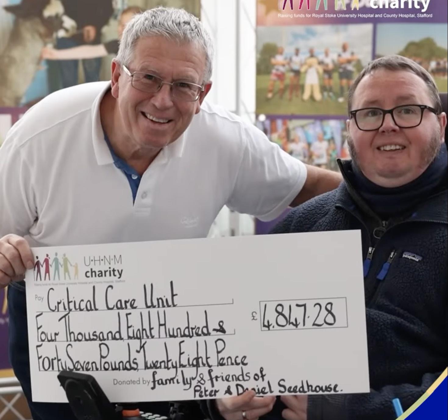 During 2023, Peter Seedhouse completed 70 cycle rides, each 70k or more, to thank the staff on UHNM’s Critical Care unit for the care provided to son Daniel.