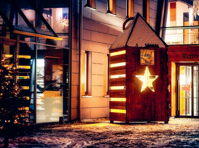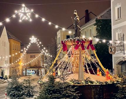 ... das sind fünf leuchtende XXL-Laternen, sind die überlebensgroßen Krippenfiguren Maria und Josef mit dem Jesukindlein im Rathaus–Innenhof, die Hl. drei Könige am Kirchplatz, das ist der weih nachtlich geschmückte Marienbrunnen und die stimmungsvolle beleuchtete Innenstadt, das sind die Hirtenstunden jeden Donnerstag im Advent, das sind die Weihnachtsmärkte im Granitzentrum und in der Innenstadt.