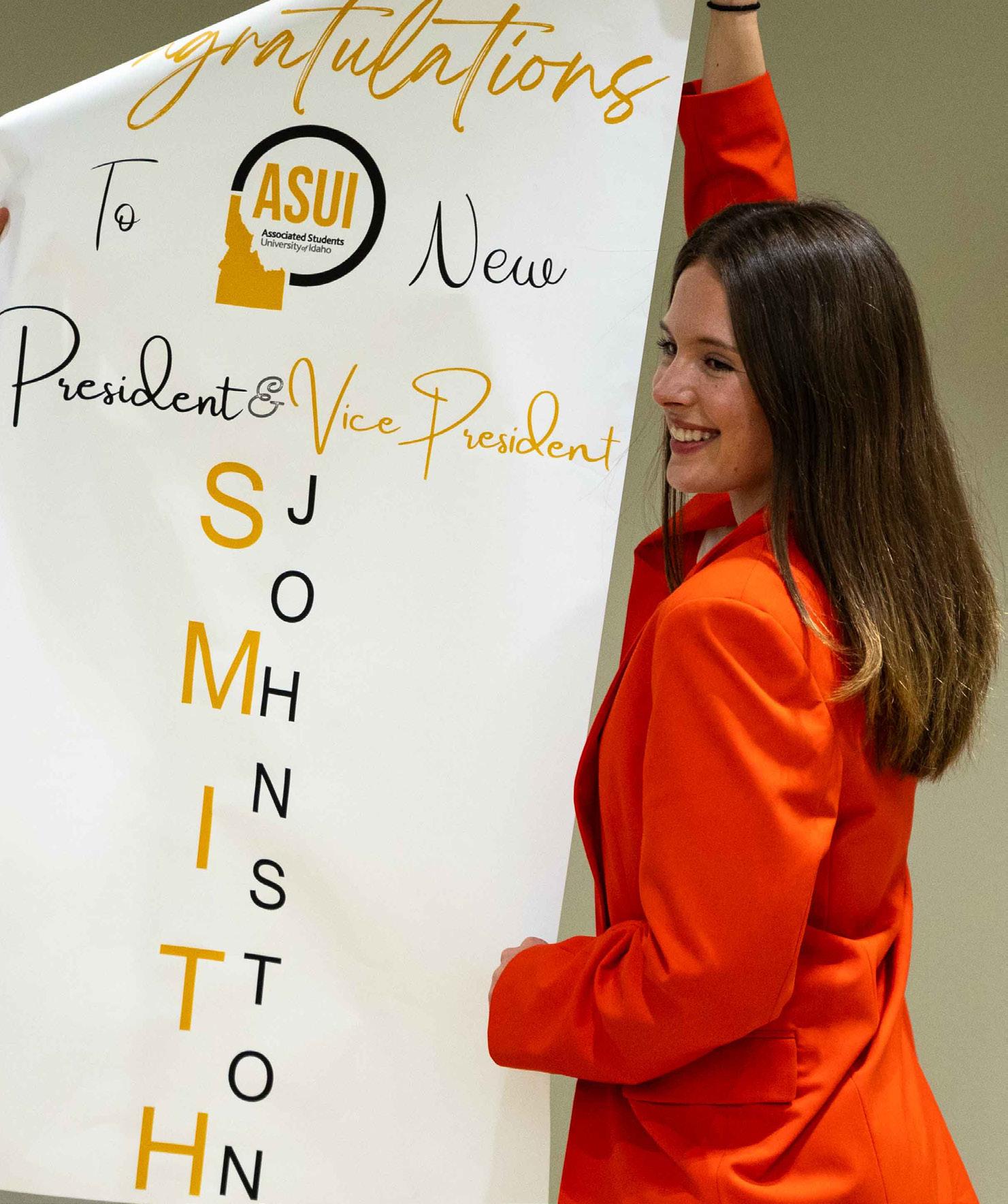 “I have thought a lot about what the University of Idaho has meant to me these last five weeks, and I can’t put into words, more so, that it’s just life changing. And being ASUI president, I think I can advocate for people who didn’t have the cards dealt right for them for college,” Smith said.