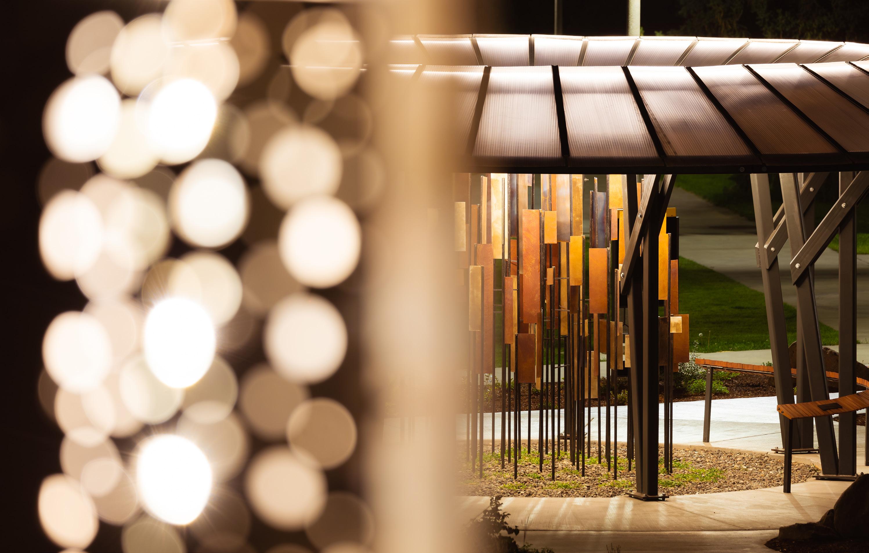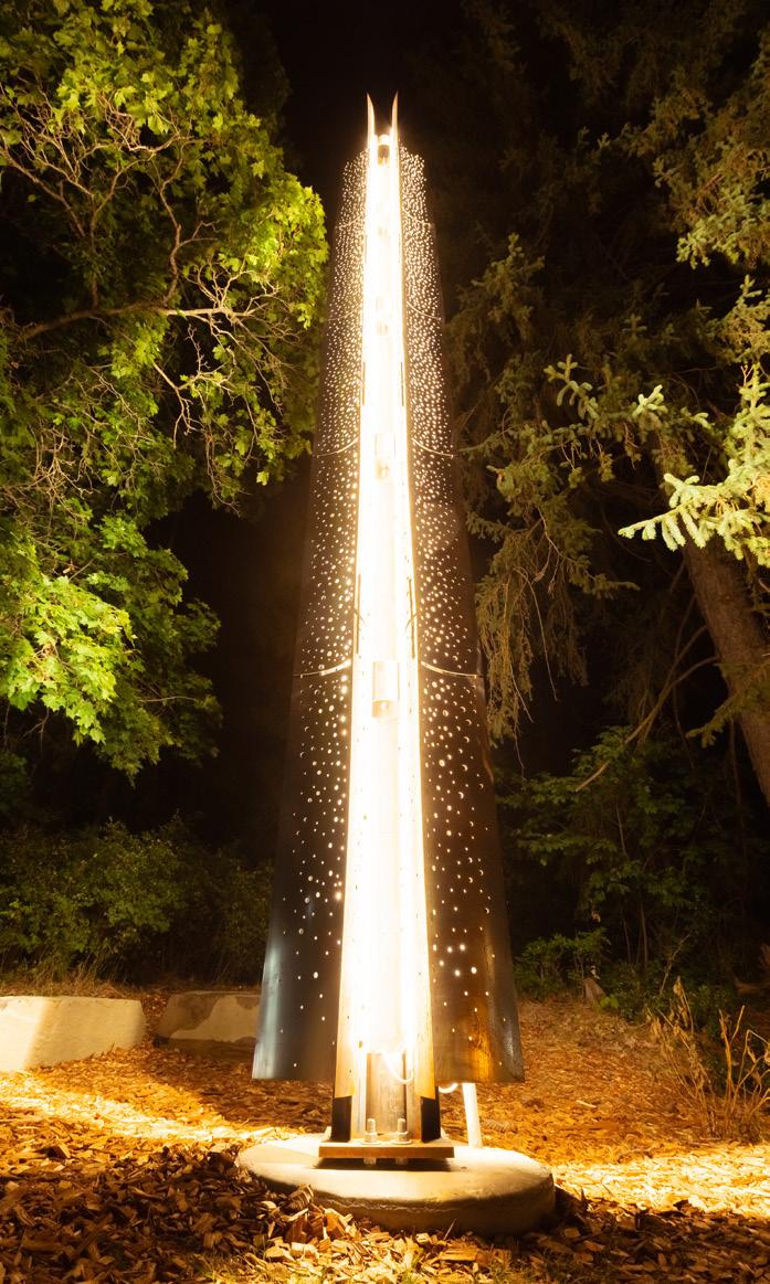 After three months of construction, the previously empty MacLean Field has branching walkways, a diverse plant garden and a gazebo-type structure in the middle. The structure in the middle houses a sculpture and four plaques with the names of the four vandals who died in November 2022. There are also several spaces in the structure where students can leave letters to students who have passed away. The UI Library will be collecting these letters and archiving them. Above the field is a tall silver beacon on the hill that lights up the garden at night.
