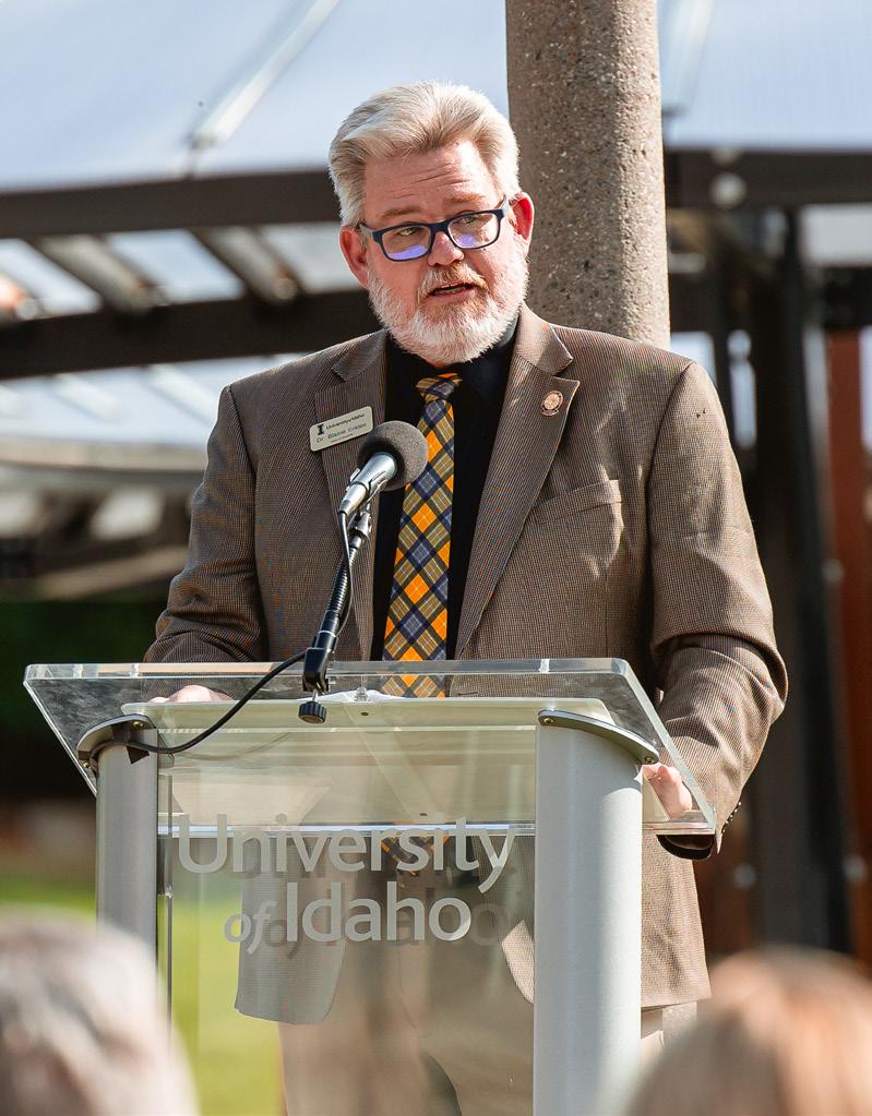 Blaine Eckles, the Dean of Students and Vice Provost of Student Affairs for UI, spoke during the ceremony. He explained what the purpose of