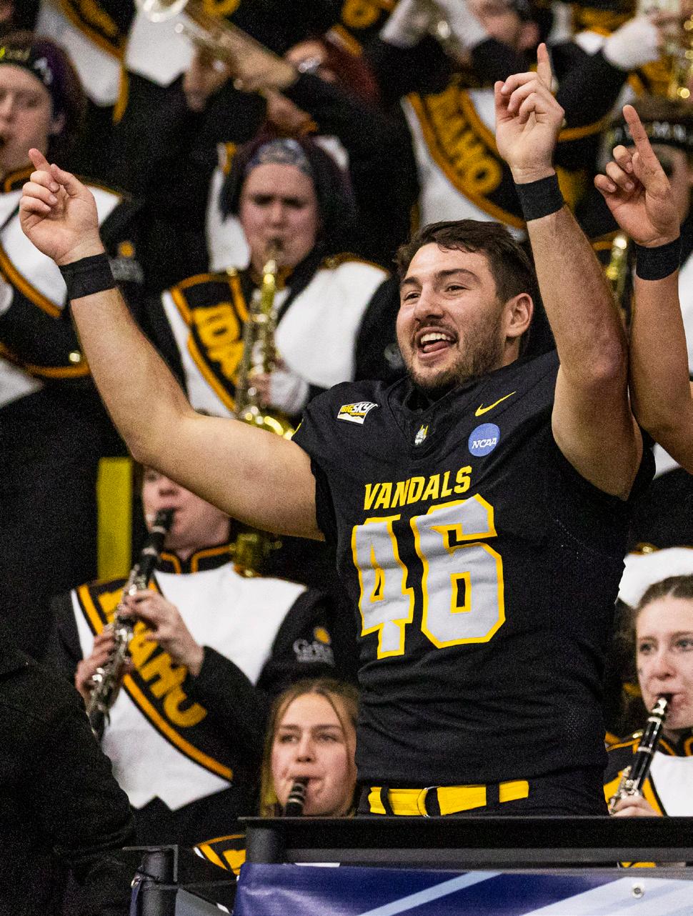 John Keegan | Argonaut Hayden Hatten celebrating on the sidelines during a game against ISU