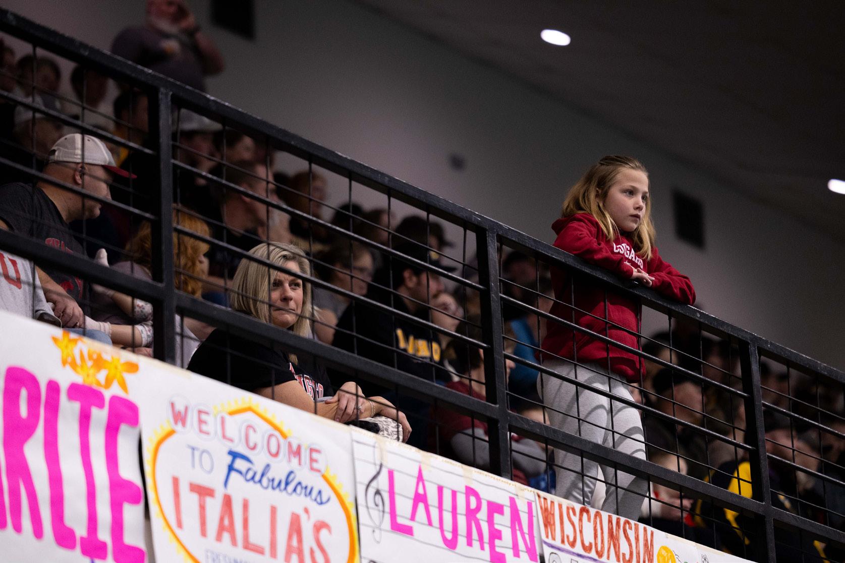 senior Bethany Rahn embraces her senior teammates after thei r final home meet of the season