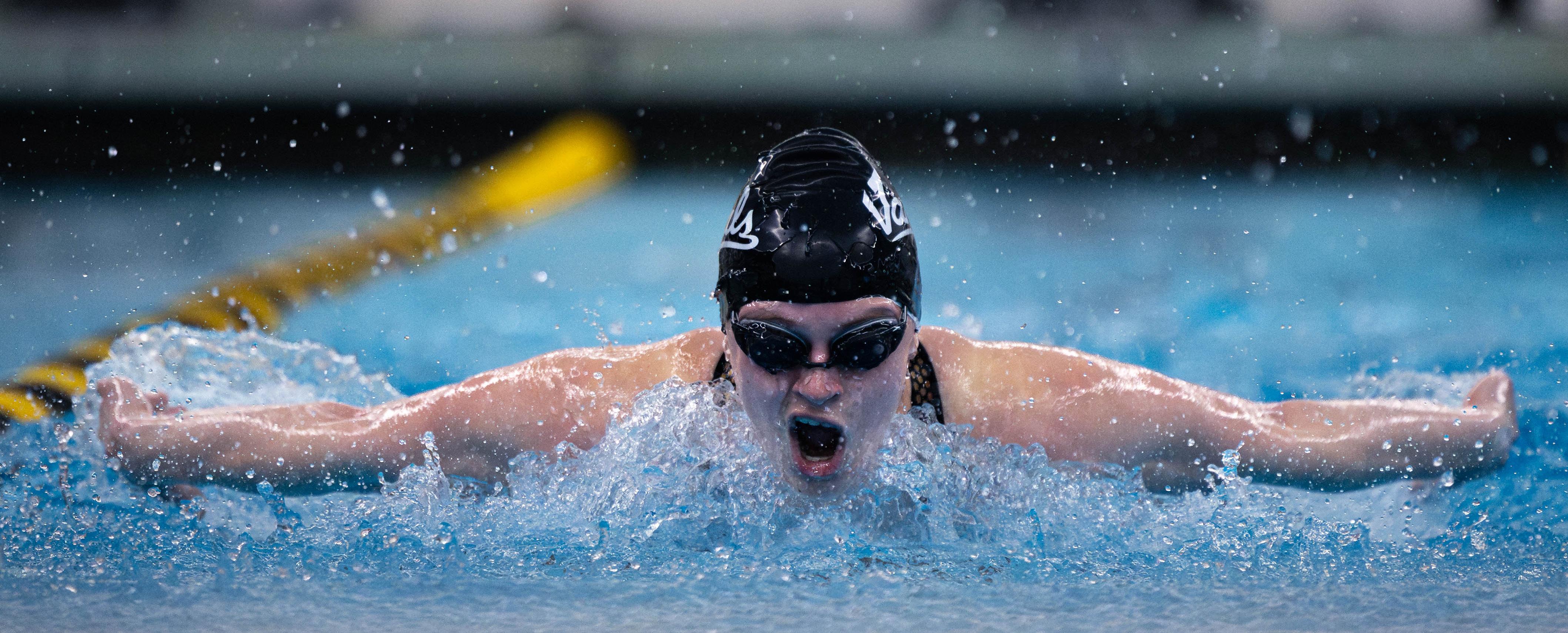 UI swimmer Helen Schumaker races the 100 yard butterfly