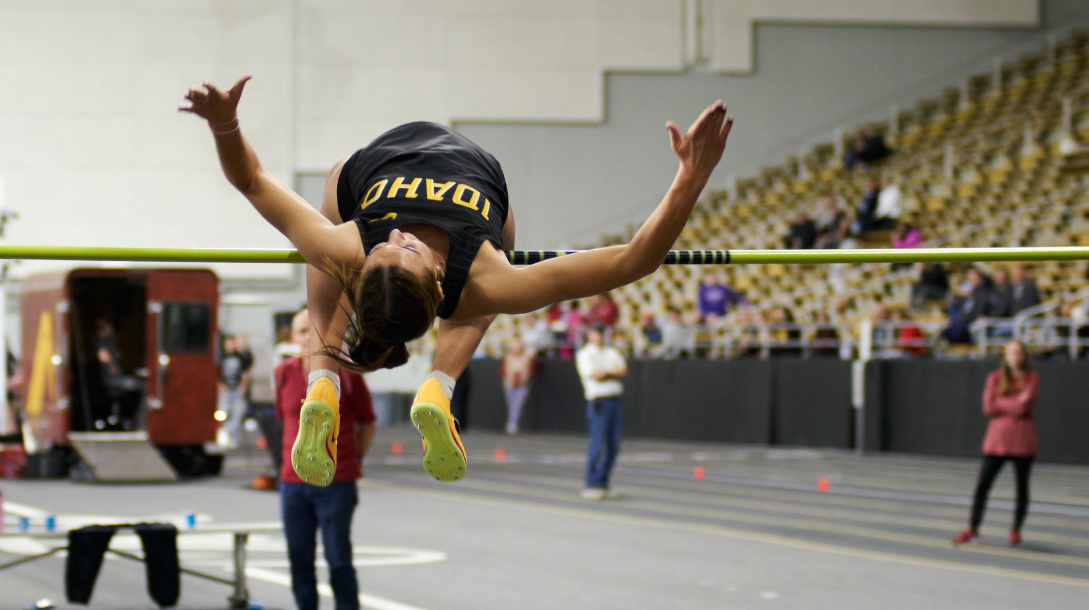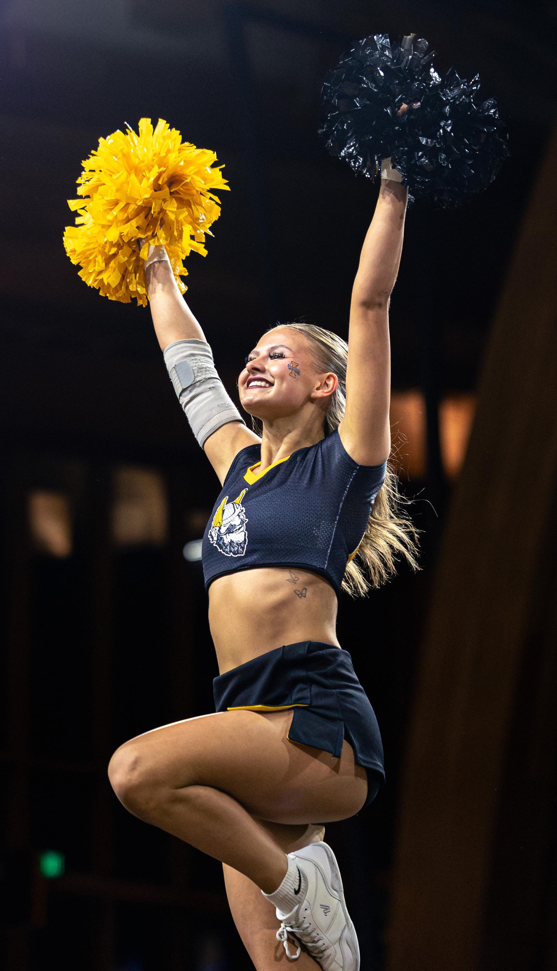 UI cheerleader Syncere Griffin flies at the Jan. 15 women’s basketball game against Idaho State