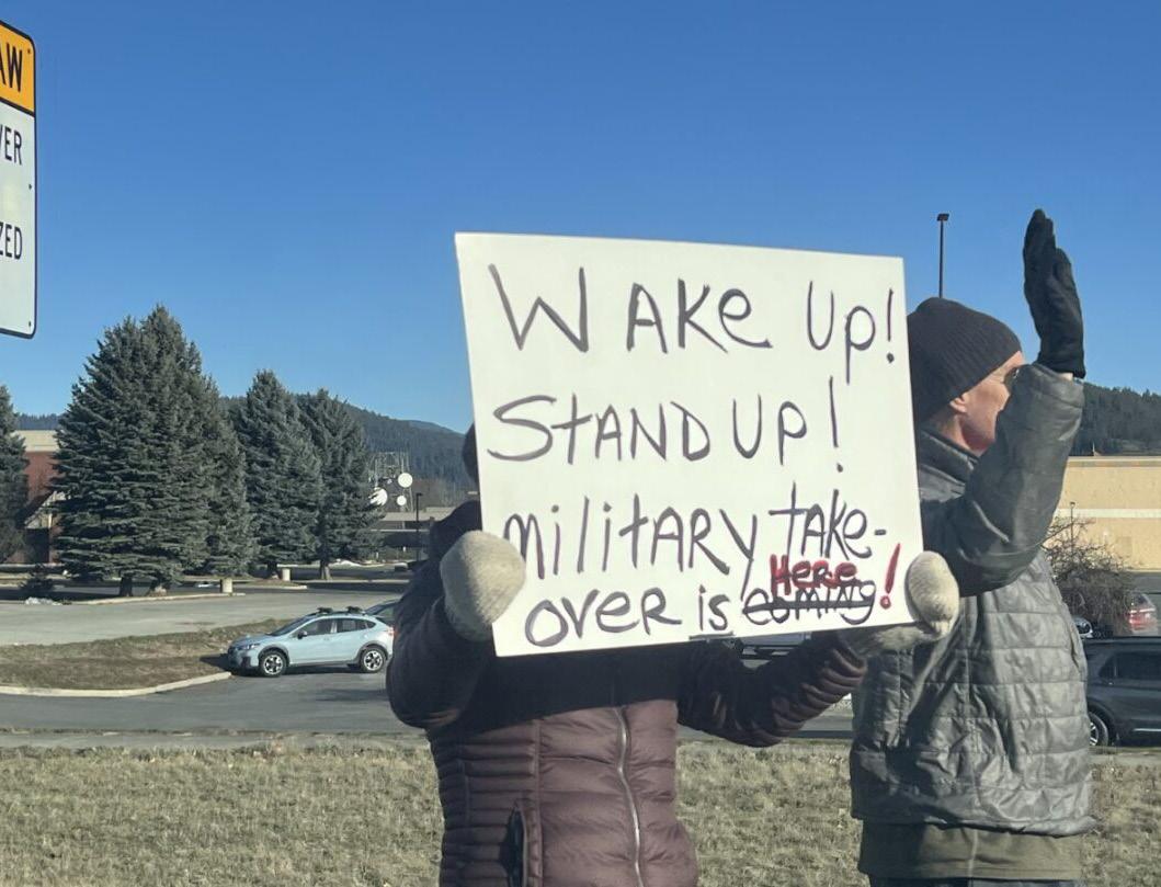 Protestors lined on the street in Coeur d’Alene against recent ICE actions