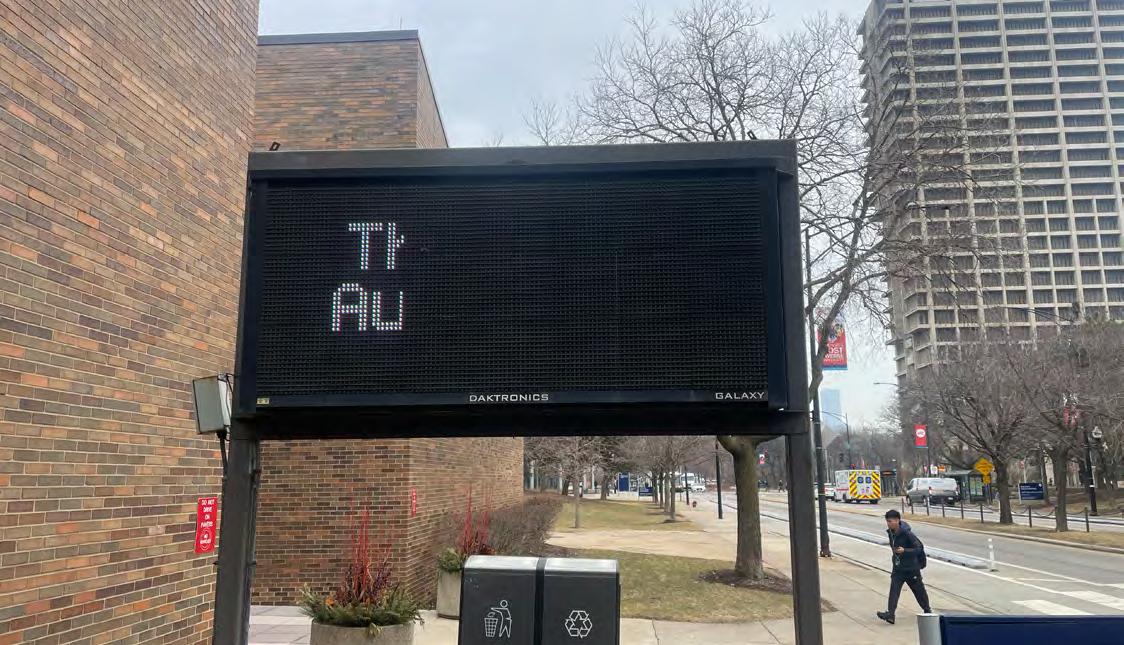 The School of Theatre and Music has had a Daktronics digital marquee display since the early 2000s. With over two decades of use, the display had worn down significantly and was limited by the technology of the time. Towards the end of its life, only one side of the marquee was still functional, and the cost to repair the broken panel outweighed the cost to purchase a new model.