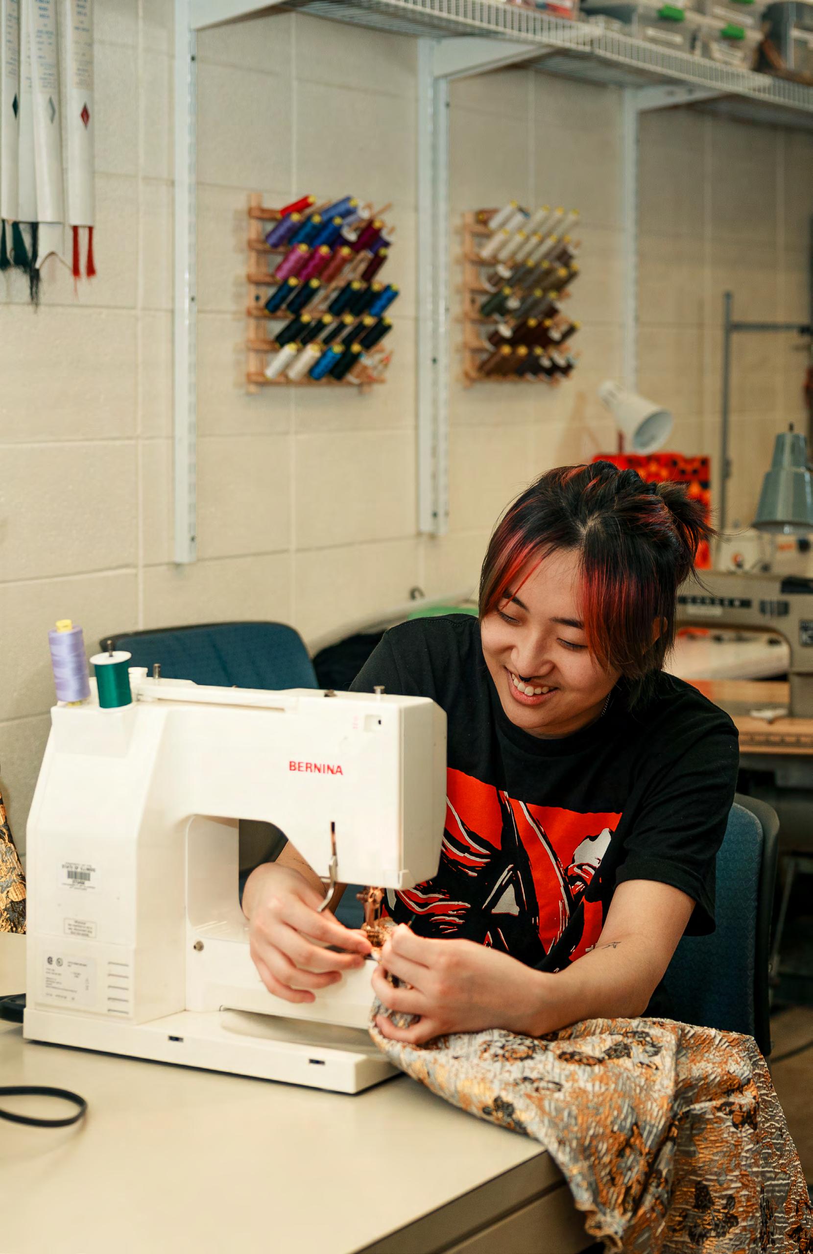 Students develop a strong foundation in theatre through core courses then deepen their study in the area of design that interests them. Courses are offered in acting, scenic design, lighting design, costume design, make-up design, set construction, costume construction, stage management, directing, playwriting, and contemporary performance. All students graduate with a portfolio.