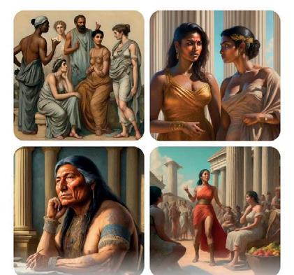 Create an image of Greek philosophers > Sure, here are some images featuring Greek philosophers representing different genders and ethnicities